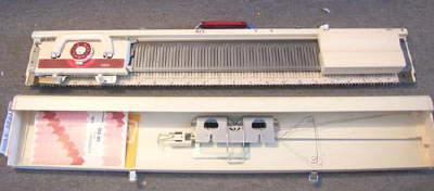 Chunky or bulky knitting machine main bed. Any patterns will need to be done manually, by bringing the needles forward by hand.